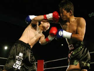 ドラゴンボール大好きで、一時期孫悟空よりも強かった桃白白(タオ・パイパイ)の名前をリングネームとして使っている千春は、1Rから重いミドルを入れながら回りこむ。