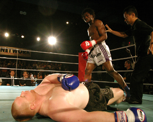 当初ラッセルと対戦予定だったピーター・レアイトゥラ(ニュージーランド)が来日出来なくなった為に、急遽ピーターの代役を務めたのはK−1 TRYOUTでおなじみのジャクソン・ビアフラ。ジャクソンは6月3日のJ-NET後楽園大会に出場したばかりだが、オファーを快く受けたという。